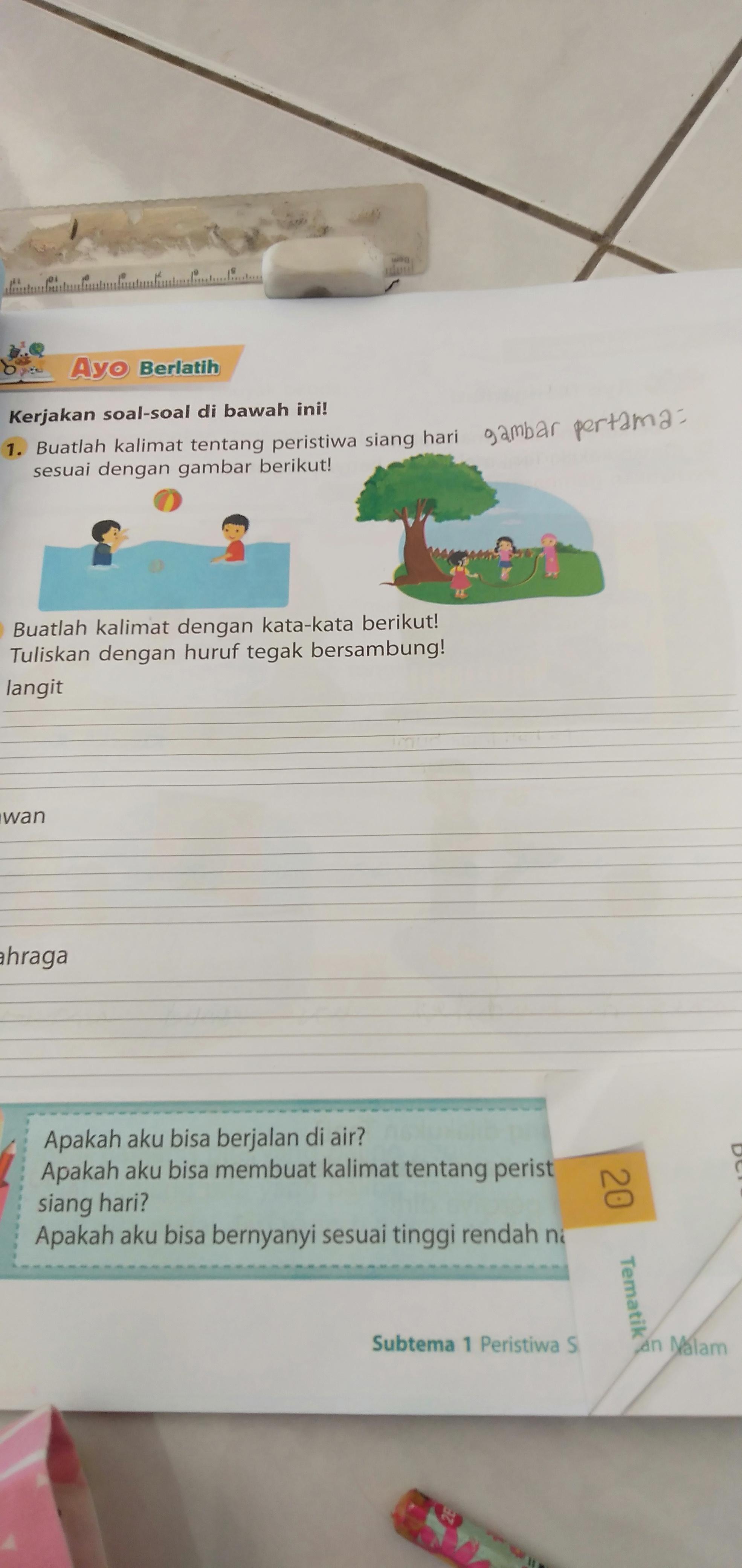 Aku ini ya, jujur saja memang malas bangun pagi, namun rajin sekali untuk . Untuk soal latihan berikutnya anda bisa klik disini untuk soal latihan yang sebelumnya . Istilah siang hari apa artinya? Yups, betul sekali, jawaban yang benar adalah siang hari terasa panas. Maka kita akan memberikan vaksinasi pada malam hari, kata nadia.